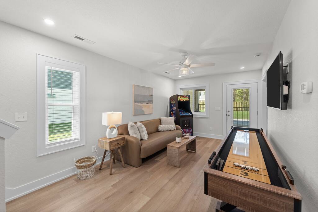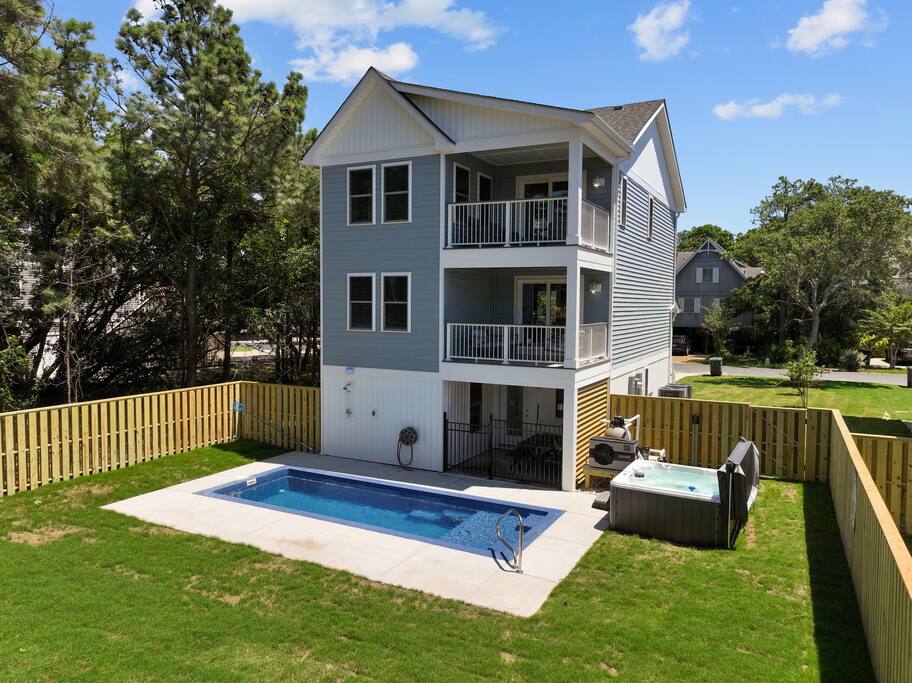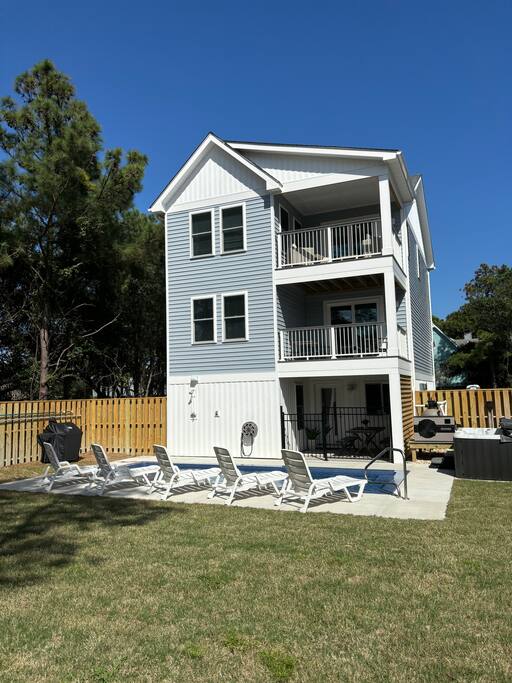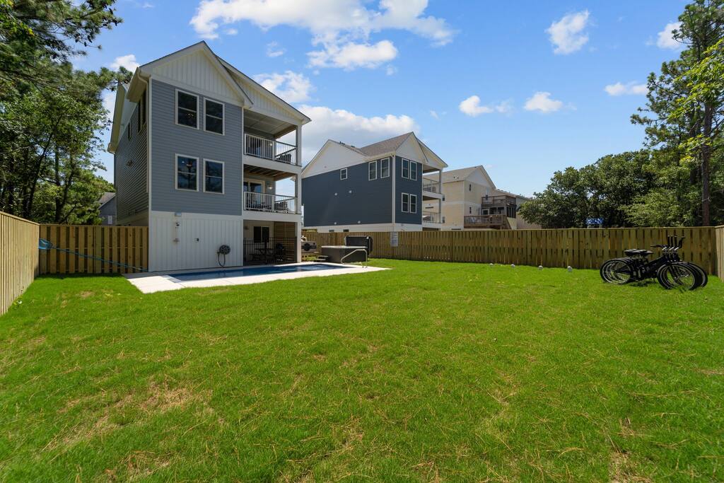👋 Hi! I am your host, Natalie. With over 10 years of host experience, trust you are in great hands! This is our newest vacation rental coming Summer, 2024. We are finalizing the construction process and look forward to welcoming guests this June (or sooner)! Images from our previous newly constructed cottage. Need more space?! This property has a neighboring "twin cottage" called 'Park and Paddle'. Pool is OPEN April 25 - October 28th. Hot Tub is OPEN year-round, > Both are professionally maintained twice a week. >> Pool heat available for an additional fee. << LIMITED TIME OFFER ask us about FREE pool heat with your September or October stay. Escape to Coastal Bliss: Nags Head Retreat with Pool, Game Room, and Private Suites! Only .4 or 8 minute walk or 2 minute drive to the ocean access via Bainbridge Street or Nags Head Fishing Pier. Indulge in luxury crafted by Simpleside Construction, renowned for their award-winning craftsmanship. Relax in style with chic furnishings curated by Site to Sea Interior Design. Unwind in the serene ambiance of Nags Head, boasting tranquil surroundings and easy access to local dining, shopping, and idyllic beaches for fishing, surfing, or simply soaking up the sun. With ample living space, fenced yard, and top-notch amenities including a hot tub and video arcade, this coastal haven promises an unforgettable retreat for your family's enjoyment. Your dream vacation awaits in this coastal paradise! 🌾 Waivo Damage Protection – Peace of Mind for Your Stay 🌾 Instead of a security deposit, we’ve added a non-refundable $75 Waivo Damage Protection Fee under the Management Fee. This covers minor accidental damages, so you won’t be charged for small mishaps like spills or broken items. For damages over $3,000, we will work with the guest to resolve the issue, including legal action if necessary. Enjoy your stay worry-free! Let us know if you have any questions. Where we 🌟 Shine 🌟: * NEWLY Built in 2024 on Beach Side of Nags Head * Only a .4 or 8 minute walk or 2 minute drive to the ocean access. Amble parking in Nags Head. * Easy Walkability to Nags Head Pier, Dowdy Park - Restaurant and Ice Cream! * Fully Stocked with gear for you to spend time together, cook or relax. * Baby Gear, Board Games and Bikes Available! * All beds and pillows are fully-encased part of our high-standard of cleanliness. 🌿 Discover coastal luxury at its finest in this Nags Head retreat boasting a pool, game room, private suites, and chic furnishings, providing the ultimate haven for relaxation and enjoyment. 🌿 Nestled in the heart of Nags Head, this coastal retreat epitomizes luxury living with its array of amenities and stylish touches. From the moment you arrive, you'll be captivated by the allure of the private pool, perfect for refreshing dips under the sun's warm embrace. Step inside to discover a thoughtfully designed game room, offering endless entertainment with shuffleboard and a video arcade game, ensuring fun-filled evenings for the whole family. As night falls, retire to one of three private suites, each exuding comfort and tranquility, providing a peaceful sanctuary after a day of coastal adventures. Whether you're lounging in the hot tub, soaking up the sunshine in the fenced yard, or exploring the nearby beaches and local attractions, this vacation home offers an unparalleled retreat where cherished memories are made against the backdrop of Nags Head's coastal beauty. Experience the epitome of coastal living and create unforgettable memories with your loved ones in this exquisite Nags Head retreat. Book your stay now and embark on a journey of relaxation, adventure, and pure bliss by the sea. Your dream vacation awaits! 📣Stay with an experienced and creditable host! We have a great attention to detail, paired with 10 years of Hosting and Super Hosting experience. 📣Parking Space for MAX 4 Vehicles in the driveway. Please only park in the driveway to avoid ticketing. 📣Spacious Fenced Yard with Pool and Hot Tub! Three levels of decking and THE INTERIOR SPACE: ✔ Strong Wi-Fi ✔ Laundry Room w/ Washer + Dryer (Detergent Provided) ✔ Fully Supplied Kitchen KITCHEN ✔ Fully-Equipped Kitchen ✔ Stove and Oven ✔ Fridge + Freezer ✔ Toaster ✔ Kitchen Knife Block Set ✔ Cutting Board ✔ Ninja Coffee Maker ✔ Hot Water Kettle ✔ Dishes ✔ Silverware ✔ Glasses ✔ Wine Glasses ✔ Coffee Mugs LIVING ROOM // DINING - TOP LEVEL ✔ Sofa ✔ Love Seat ✔ Coffee Table ✔ Throw Pillows + Blankets ✔ Board Games ✔ Smart TV ✔ Dining Table with Seating for 6 ✔ Breakfast Bar/Island Seating for 4 THE SLEEPING ARRANGEMENTS | King Bedroom | ♛ 1 Bedroom w/ 1 King Bed ♛ Bed Linens, Quilt, Throw Blanket and 4 Pillows Per Bed ♛ 40in Smart TV EN-SUITE BATHROOM ✔ Full Bathroom Located in Bedroom w/ Shower ✔ Amenities Provided: Hair Dryer, First Toilet Paper Roll HALF BATHROOM | Mid Stairs ✔ Half Bathroom Located off of the Living Room ✔ Amenities Provided: First Toilet Paper Roll LIVING ROOM//LAUNDRY - SECOND LEVEL ✔ Sofa ✔ Coffee Table ✔ Throw Pillows + Blankets ✔ Smart TV ✔ Location of GE Stackable Washer and Dryer THE SLEEPING ARRANGEMENTS | King Bedroom | ♛ 1 Bedroom w/ 1 King Bed ♛ Bed Linens, Quilt, Throw Blanket and 4 Pillows Per Bed ♛ 40in Smart TV EN-SUITE BATHROOM ✔ Full Bathroom Located in Bedroom w/ Shower and Bathtub ✔ Amenities Provided: Hair Dryer, First Toilet Paper Roll THE SLEEPING ARRANGEMENTS | KING Bedroom | ♛ 1 Bedroom w/ 1 King Bed ♛ Bed Linens, Quilt, Throw Blanket and 4 Pillows Per Bed ♛ 40in Smart TV EN-SUITE BATHROOM ✔ Full Bathroom Located in Bedroom w/ Shower and Bathtub ✔ Amenities Provided: Hair Dryer, First Toilet Paper Roll LIVING ROOM//GAME ROOM - GROUND LEVEL ✔ Sofa ✔ Coffee Table ✔ Throw Pillows + Blankets ✔ Smart TV THE SLEEPING ARRANGEMENTS | BUNK ROOM | ♛ 1 Bedroom w/ 2 Twin Beds as a Bunk Bed ♛ Bed Linens, Quilt, Throw Blanket and 4 Pillows Per Bed 