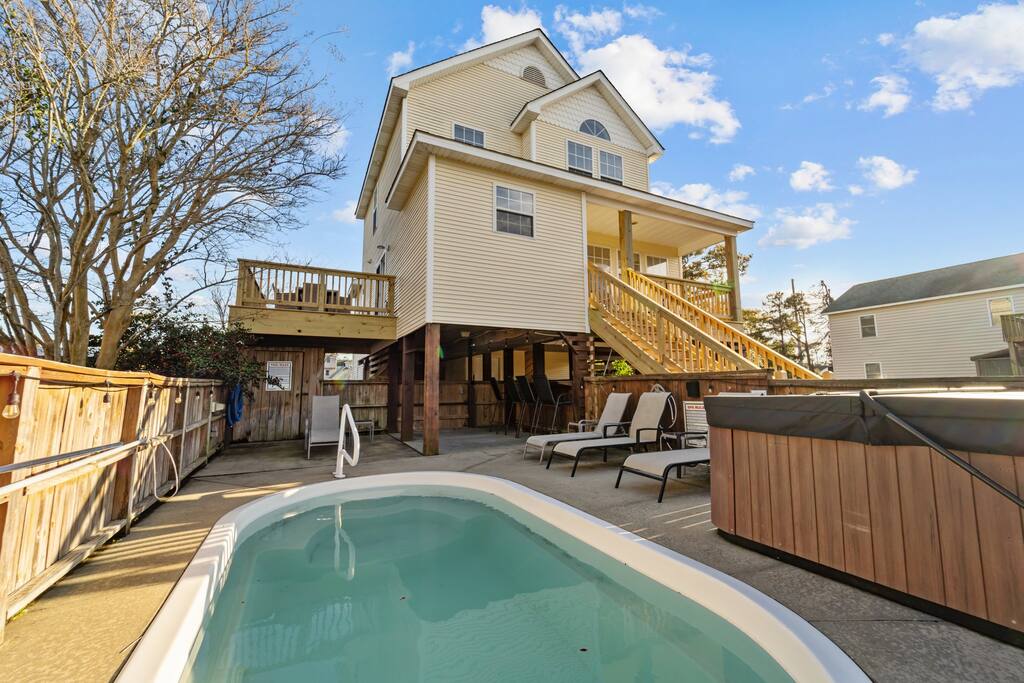 -4 bedrooms (2 King, 1 Queen, and 1 bunk room with 2 sets of twin bunks). -All 4 bedrooms are large enough to fit a pack and play, with 2 of the bedrooms having separate closets large enough to fit a pack and play in it. -3 full bathrooms with a shower and tub. -Spacious game room with pull out couch and kitchenette. -Newly renovated kitchen with open concept layout to the dining area and living room. -Inviting outdoor area with a POOL, HOT TUB, tiki bar, outdoor shower, and outdoor bathroom. >Pool is OPEN May - September >Hot Tub is OPEN March - October >Both are professionally maintained twice a week. >>>Location, location, location!!<<< You will love our neighborhood! A quiet cul-de-sac with no through traffic but situated in the heart of Nags Head close to the beach and popular restaurants, coffee shops, ice cream and an abundance of activities. Services + Amenities Providing ample amenities and a welcoming atmosphere is key to the perfect vacation rental property, and we have put a lot of effort into achieving just that. Some of our key amenities (full list under amenities on the listing): - Pool, hot tub, and outdoor tiki bar area - 4 cruiser bicycles, (comes with locks and helmets, condition not guaranteed) - Linens and bath towels - Fully stocked kitchen - Larger items for babies / toddlers (pack and play, high chair, baby gates) >>>Pet Friendly!!<<< We welcome up to 2 well-behaved pets per stay (unless otherwise agreed). Must be house broken, on flea and tick medication and travel with a crate, if needed. A one-time pet fee of $250 applies. To ensure all our guests enjoy a clean and comfortable experience, our property undergoes extensive professional cleaning after every pet stay—so you’d never know a furry friend was here! >>>Beach Access + Activities<<< .2 miles to the E Bladen St. beach access, which is a quick and easy walk along a quiet street / sidewalk (NO walking along the main highways!). This access also offers paved beach parking, porta-potties, outdoor showers, sand access, wooden walkways, and pet waste bags. .4 miles to Dowdy Park, a must-visit spot in OBX with expansive green space, large playground area, pickleball and basketball courts, picnic shelters, and Farmers Markets and other activities throughout the summer. 1 mile to Jockey’s Ridge State Park (The Dunes), which is the tallest living sand dunes on the East Coast, offering breathtaking views (especially at sunset) and hiking. .5 miles to Bonnett Street Beach Access, which has 68 available parking spots, stabilizing beach mat for wheelchairs, wooden walkway, lifeguard and bathhouse. .5 miles to Nags Head Fishing Pier .5 miles to the Nags Head YMCA >>>Food+ Drink<<< >>Coffee Shop + Cafes .5 miles from Waveriders Coffee, Deli, & Market .8 miles from Morning View Coffee House 1 mile from Front Porch Café- Nags Head .7 miles from The Spot (Waffles, Ice Cream and Acai Bowls) .5 miles from OBX Wake & Take (bakery) >Grocery Stores 1 mile to Food Lion 1.5 miles to Harris Teeter >Ice Cream .5 miles from Surfin’ Spoon Frozen Yogurt Bar .7 miles from The Spot (Waffles, Ice Cream and Acai Bowls) 1.5 miles to Jockey’s Ridge Creamery and the Fudgery >>Restaurants .4 miles from Lucky 12 Tavern .4 miles from Tortugas Lie .4 miles from Greentails Seafood Market and Kitchen .4 miles from Madisons Pizza 1.5 miles from Mulligans >>Shopping 1.5 miles from Jockey’s Ridge Crossing (Kitty Hawk Kites, Kitty Hawk Surf Co, Life is Good, and more!) .4 miles to Super Wings .6 miles to Secret Spot Surf Shop, Vintage Vibe OBX Our priority is to ensure that you have an unforgettable stay at our cottage. We are available to answer any questions or fulfill any needs you may have during your stay. We pride ourselves on our guest service and responsiveness and we hope that you enjoy your stay as much as we love aiding you with a worry-free vacation. We have great recommendations and are happy to assist you in planning your perfect trip to OBX! 🛡️ Damage Protection – Peace of Mind for Your Stay Instead of a traditional security deposit, we’ve added a non-refundable $75 Damage Protection Fee under the Management Fee. This covers minor accidental damages — like spills, scratches, or a broken dish — so you can relax and enjoy your stay worry-free. For damages over $2,500, we’ll work directly with you to resolve the matter respectfully and fairly. Questions before you book? Please feel free to message us and we will be happy to assist you with whatever you may need!